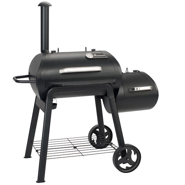 Grilltype: Trækulsgrill, Funktioner: Termometer, Sidebrænder, Stativ/vogn (medfølger/indbygget), Til røgning, Design: Barrel BBQLæs mere