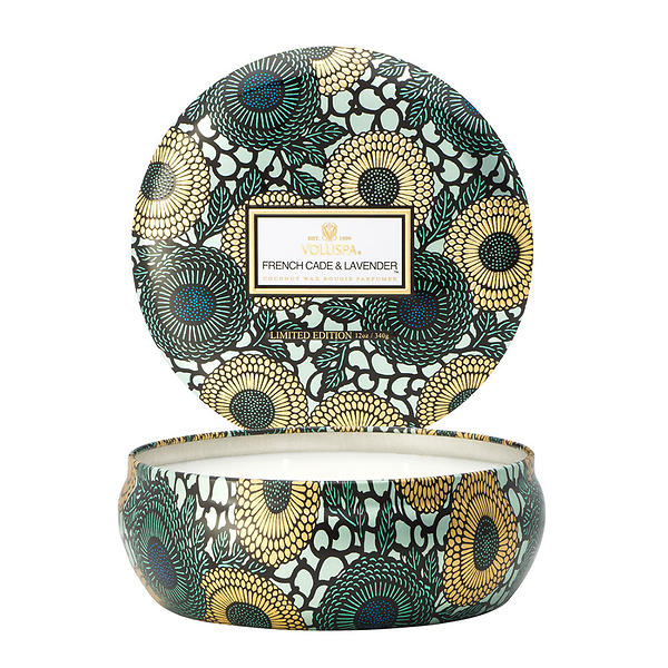 Voluspa French Cade Lavender 3 væge lys i dekorativ dåse