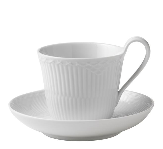 Royal Copenhagen White Fluted Half Lace Kaffekop med underkop 25cl