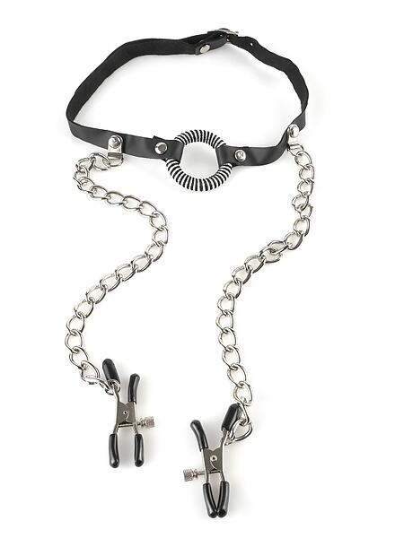Pipedream Fetish Fantasy O-Ring Gag with Nipple Clamps