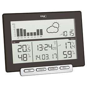 Funktioner: Vejrudsigt, Ur, Vægmonteres, Måledata: Fugtighed (Hygrometer), Udetemperatur, Indendørs temperaturLæs mere