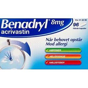 Den laveste pris på Benadryl Acrivastin 8mg 96 Capsules lige nu er 220 kr. Prisjagt sammenligner priser og tilbud fra netbutikker og fysiske butikker.