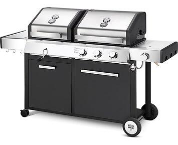 Grilltype: Gasgrill, Funktioner: Sideborde, Kombineret gas- og trækulsgrill, Stativ/vogn (medfølger/indbygget), Termometer, Kabinetter / kasser, Sidebrænder, Varmeflade / -gitter, Design: GrillvognLæs mere