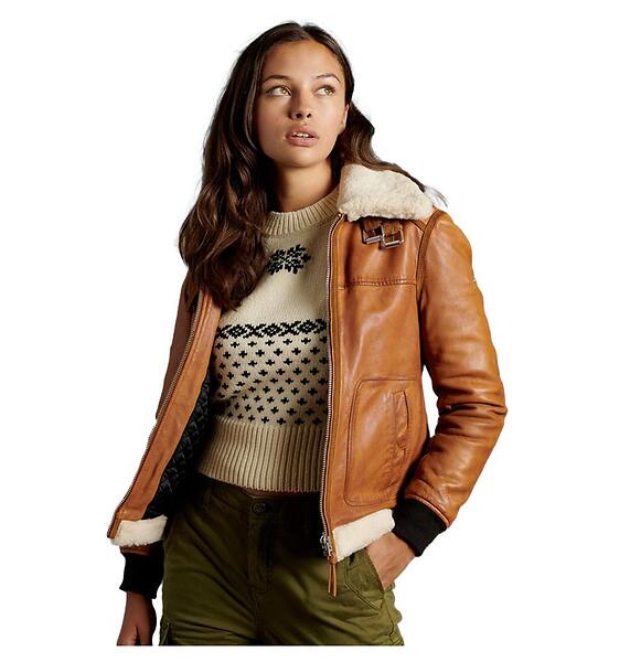 Superdry Leather Flight Bomber Jacket (Dame)