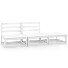 vidaXL 3 Piece Garden Lounge Set White Solid Pinewood