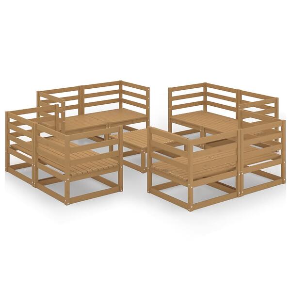 vidaXL 9 Piece Garden Lounge Set Honey Brown Solid Pinewood