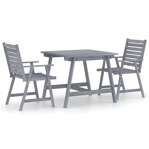 vidaXL 3 Piece Garden Dining Set Grey Solid Acacia Wood