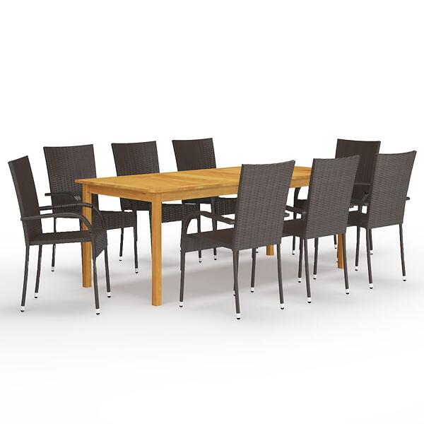 vidaXL 9 Piece Garden Dining Set Brown