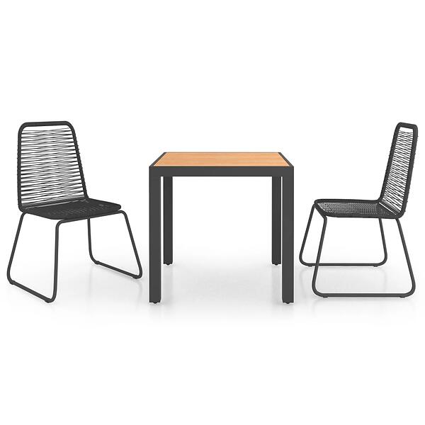 vidaXL 3 Piece Garden Dining Set PVC Rattan Black and Brown