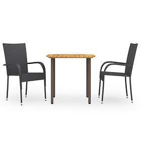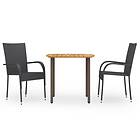 vidaXL 3 Piece Garden Dining Set Poly Rattan Black