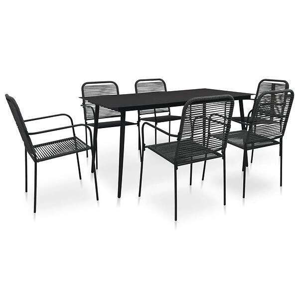 vidaXL 7 Piece Outdoor Dining Set Cotton Rope and Steel Black