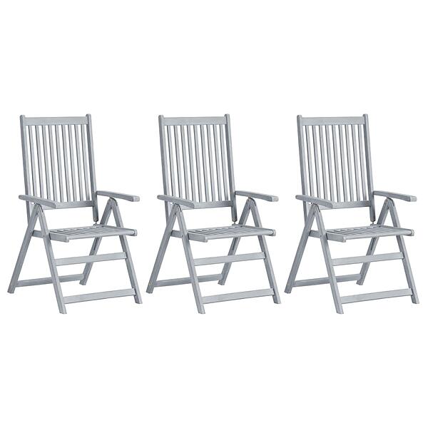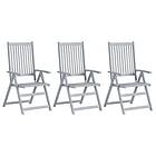 vidaXL Garden Reclining Chairs 3 pcs Grey Solid Acacia Wood