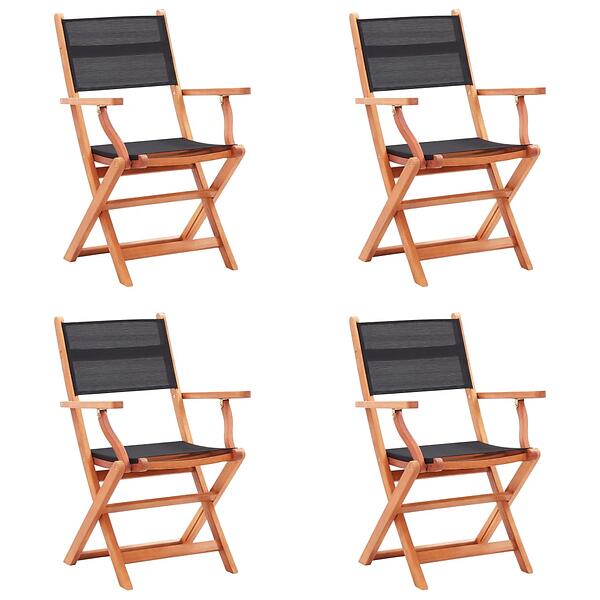 vidaXL Folding Garden Chairs 4 pcs Black Solid Eucalyptus Wood and Textilene