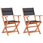 vidaXL Folding Garden Chairs 2 pcs Black Solid Eucalyptus Wood and Textilene