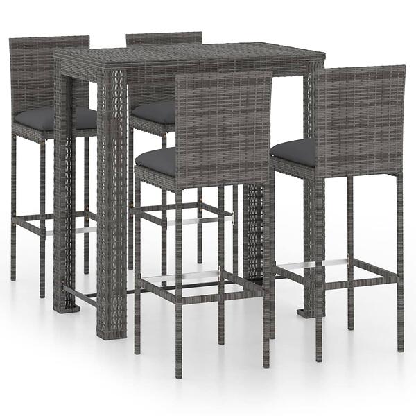 vidaXL 5 Piece Outdoor Bar Set with Cushions Poly Rattan Grey