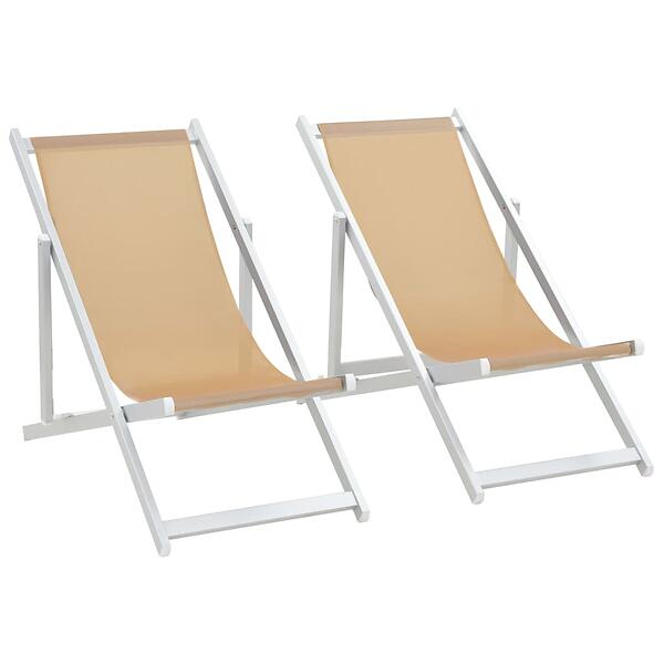 vidaXL Folding Beach Chairs 2 pcs Aluminium and Textilene Cream