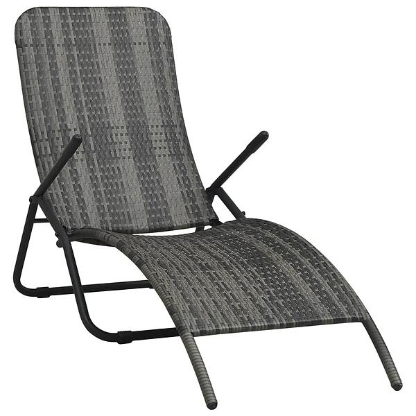 vidaXL Folding Sun Lounger Poly Rattan Grey
