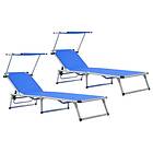 vidaXL Folding Sun Loungers with Roof 2 pcs Aluminium&Textilene Blue