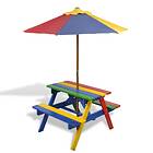 vidaXL Kids' Picnic Table with Benches and Parasol Multicolour Wood
