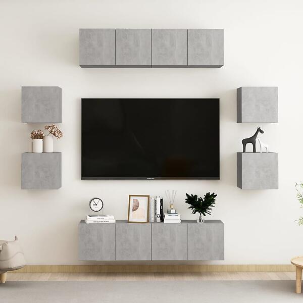vidaXL 8 Piece TV Cabinet Set Concrete Grey Chipboard