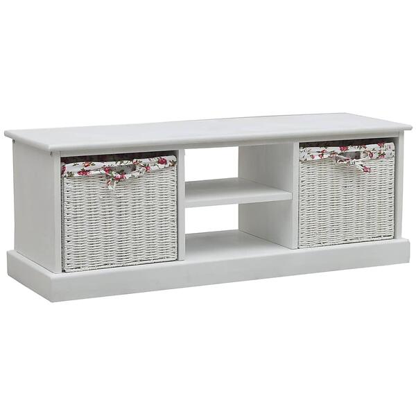 vidaXL TV Cabinet with Two Baskets White Wood