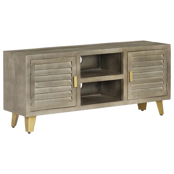 vidaXL TV Cabinet Solid Mango Wood Grey with Brass 110x30x48 cm