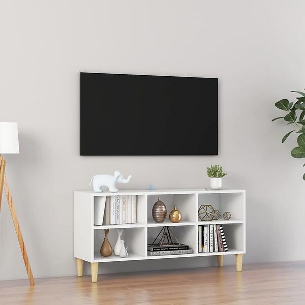 vidaXL TV Cabinet with Solid Wood Legs High Gloss White 103.5x30x50 cm
