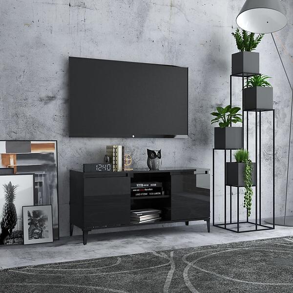 vidaXL TV Cabinet with Metal Legs High Gloss Black 103.5x35x50 cm