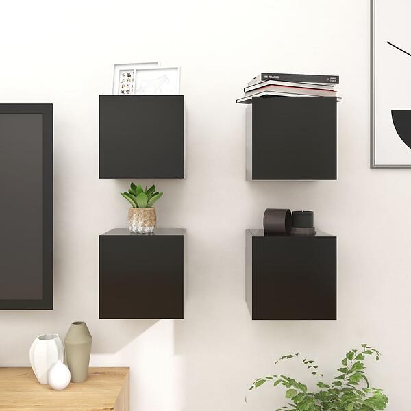 vidaXL Wall Mounted TV Cabinets 4 pcs Black 30.5x30x30 cm