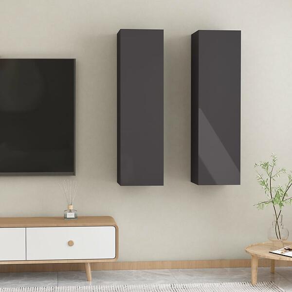 vidaXL TV Cabinets 2 pcs High Gloss Grey 30.5x30x110 cm Chipboard