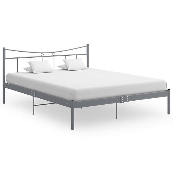 vidaXL Bed Frame Grey Metal and Plywood 160x200 cm