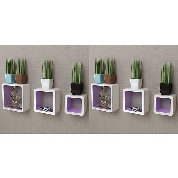 vidaXL Wall Cube Shelves 6 pcs White and Purple