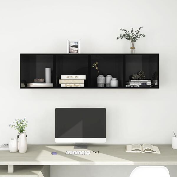 vidaXL Wall Cabinets 4 pcs High Gloss Black 37x37x37 cm Chipboard