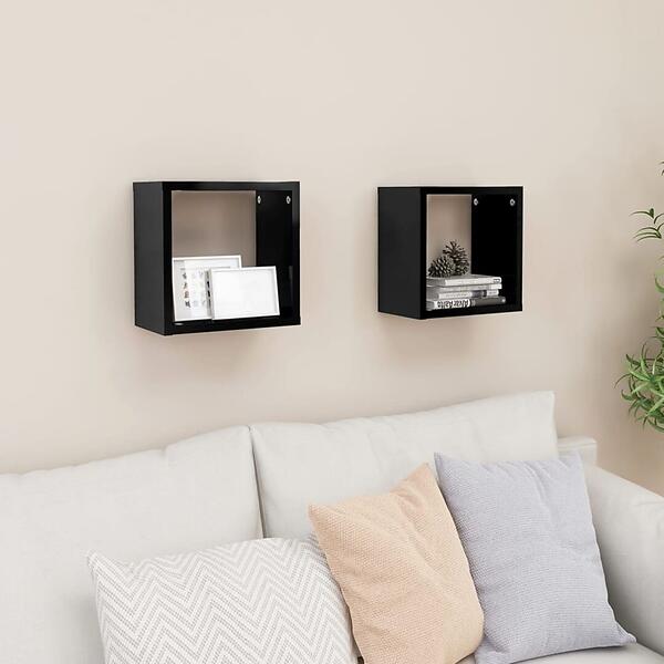 vidaXL Wall Cube Shelves 2 pcs High Gloss Black 26x15x26 cm
