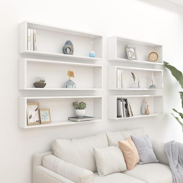 vidaXL Wall Cube Shelves 6 pcs High Gloss White 100x15x30 cm Chipboard