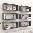 vidaXL Wall Cube Shelves 6 pcs Grey 60x15x23 cm Chipboard