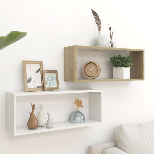 vidaXL Wall Cube Shelves 2 pcs White and Sonoma Oak 60x15x23 cm Chipboard