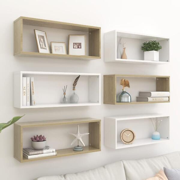 vidaXL Wall Cube Shelves 6 pcs White and Sonoma Oak 60x15x23 cm Chipboard