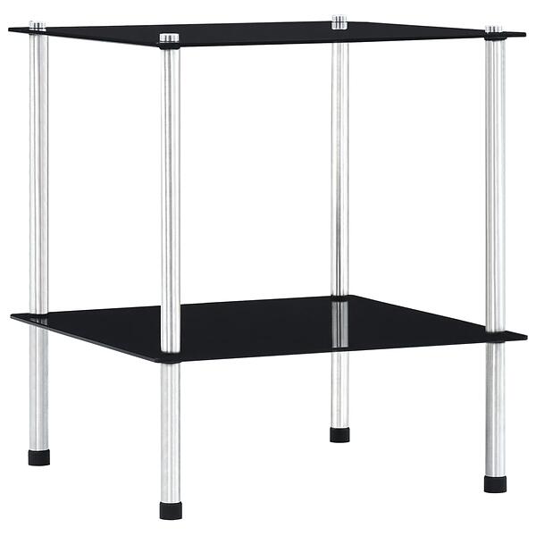 vidaXL 2-Tier Shelf Black 40x40x47 cm Tempered Glass