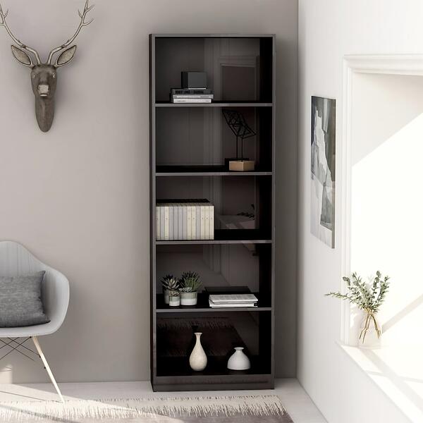 vidaXL 5-Tier Book Cabinet High Gloss Grey 60x24x175 cm Chipboard