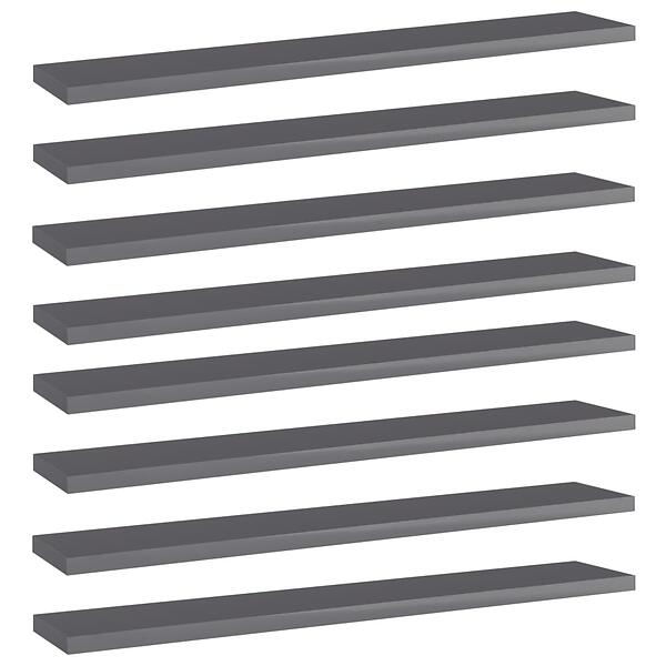 vidaXL Bookshelf Boards 8 pcs High Gloss Grey 60x10x1.5 cm Chipboard