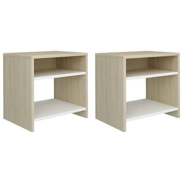 vidaXL Bedside Cabinets 2pcs White and Sonoma Oak 40x30x40cm Chipboard
