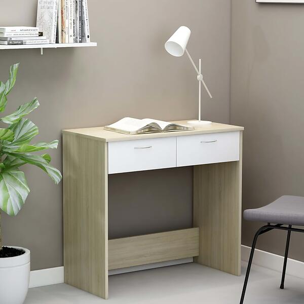 vidaXL Desk White and Sonoma Oak 80x40x75 cm Chipboard