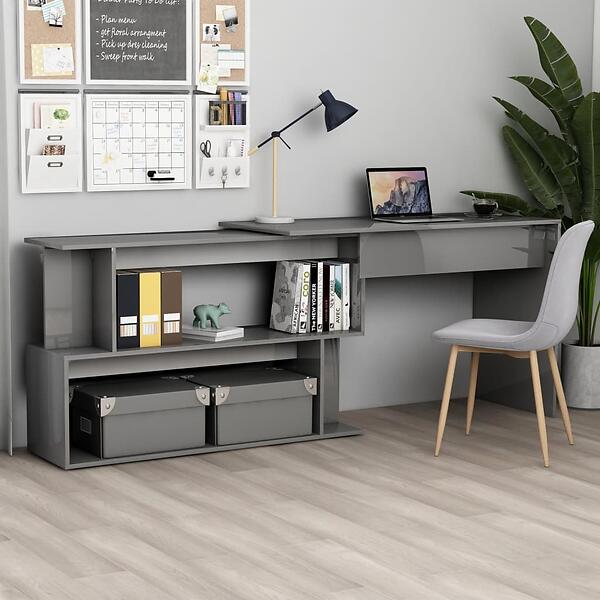 vidaXL Corner Desk High Gloss Grey 200x50x76 cm Chipboard