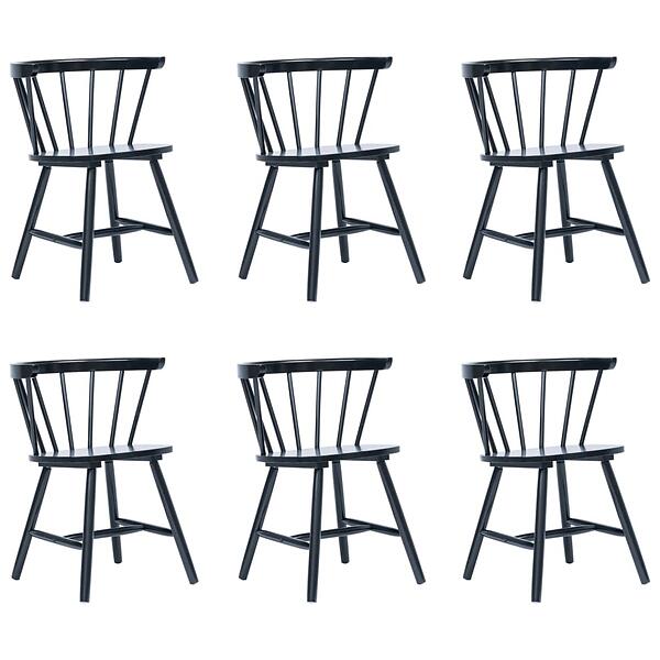 vidaXL Dining Chairs 6 pcs Black Solid Rubber Wood