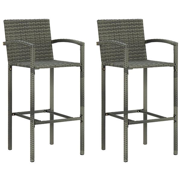 vidaXL Bar Stools 2 pcs Grey Poly Rattan