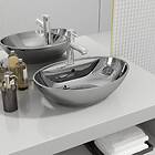 vidaXL Wash Basin with Overflow 58.5x39x21 cm Ceramic Silver