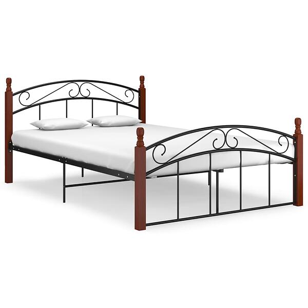 vidaXL Metall Svart Och Massiv Sängram 140x200cm