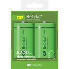 GP Batteries ReCyko+ D-batterier 5700 mAh (LR20) 2-pack