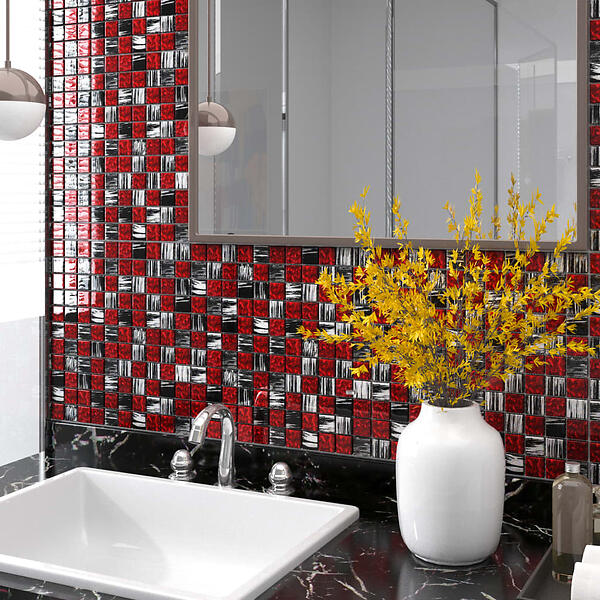 vidaXL Mosaikplattor 22st. svart och röd 30x30cm glas